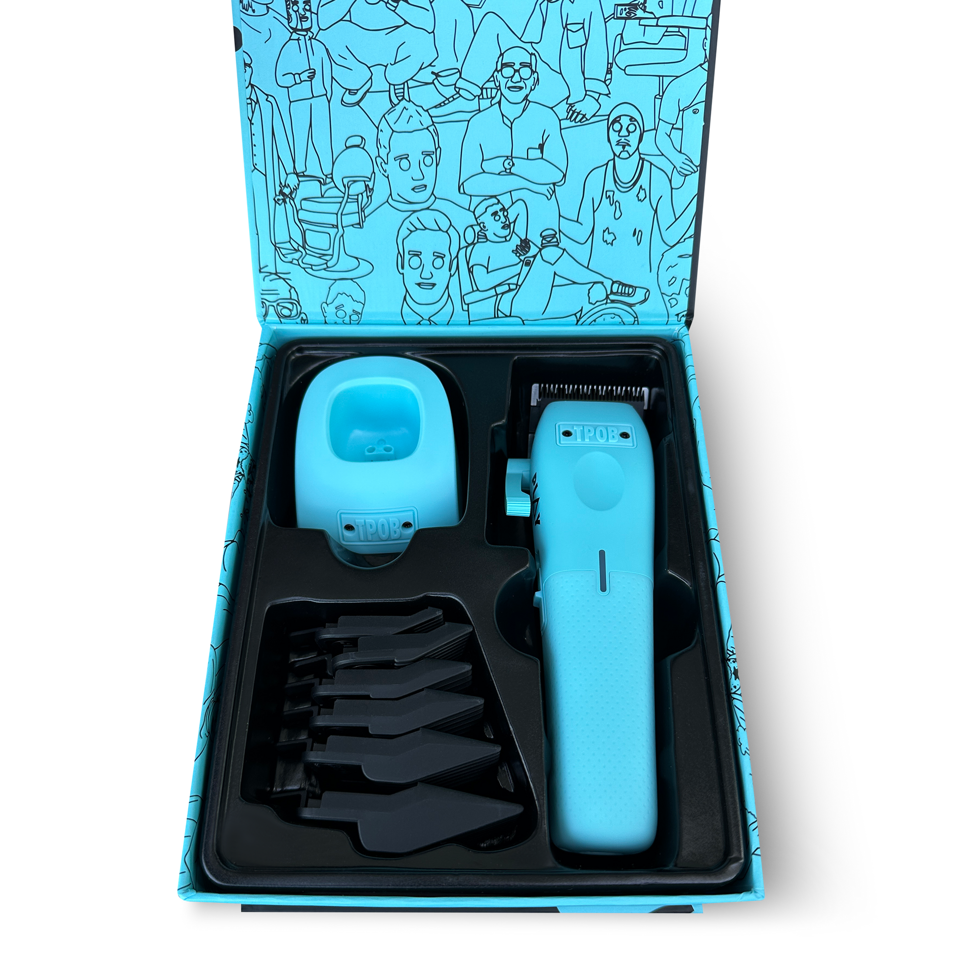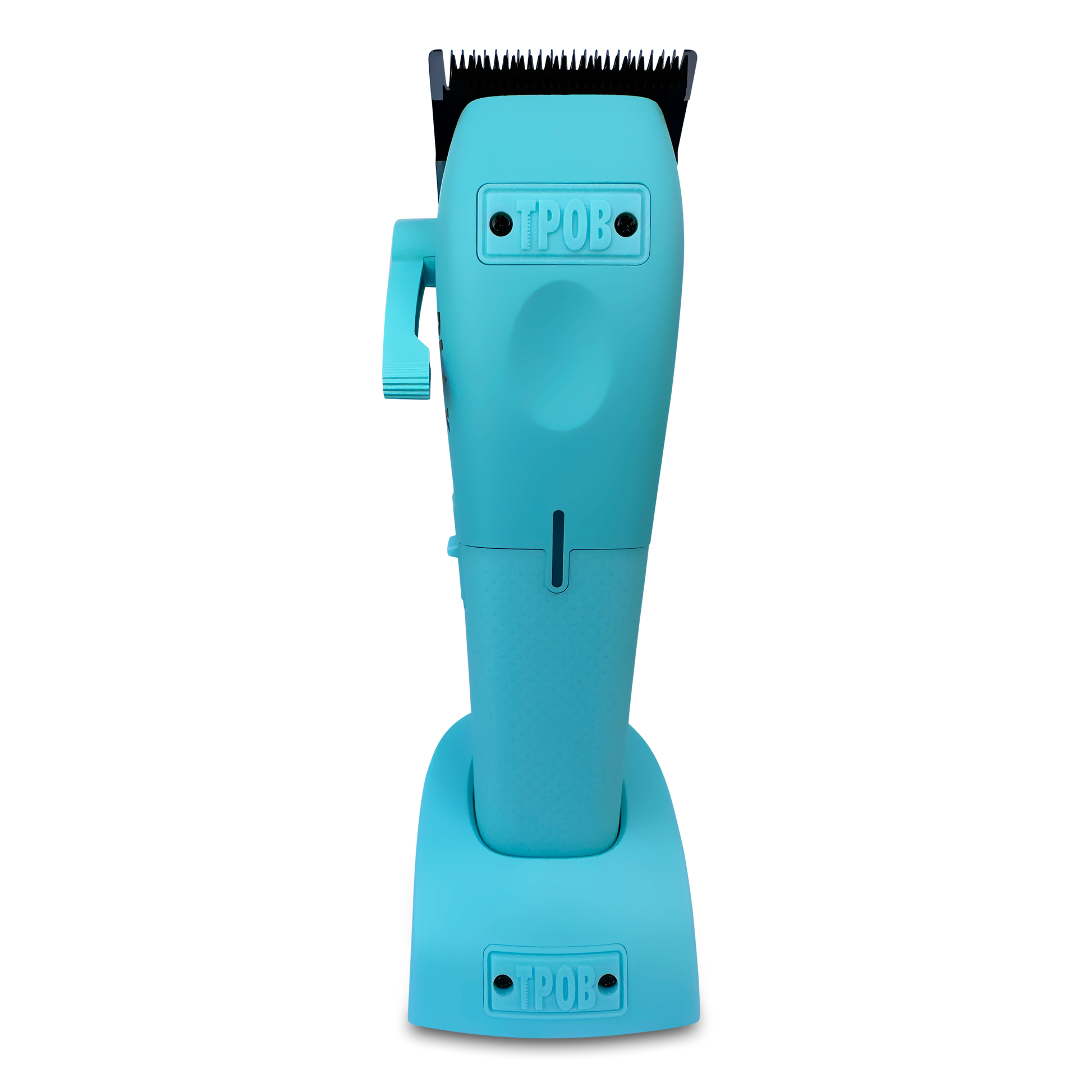 Customize your clipper with interchangeable rubber grips and TPOB logo inserts on both the machine and charging stand.